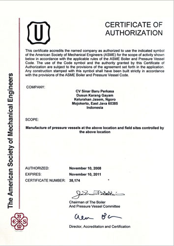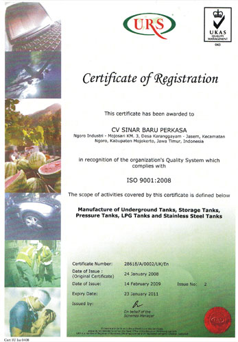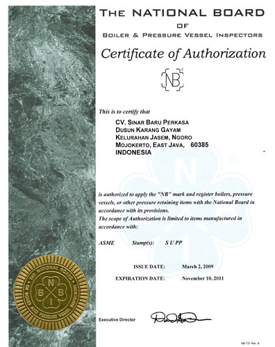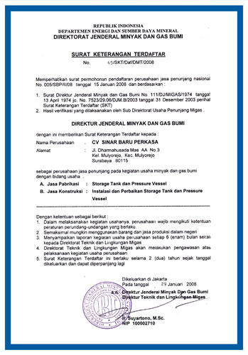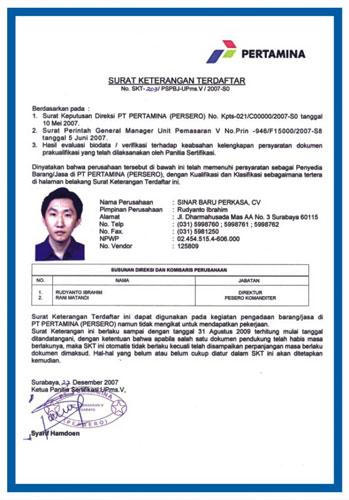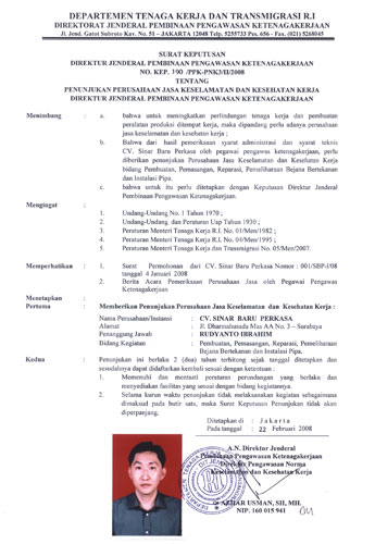 Surat legalitas dan sertifikat CV. Sinar Baru Perkasa